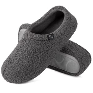 HomeTop Women's Fuzzy Curly Fur Memory Foam Loafer Slippers Bedroom House Shoes with Polar Fleece Lining (5-6 US,Dark Grey)