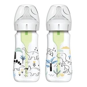 Dr. Brown's Natural Flow® Anti-Colic Options+™ Wide-Neck Baby Bottle Designer Edition Bottles, Dino Decos, 9oz/270mL, Level 1 Nipple, 2-Pack, 0m+